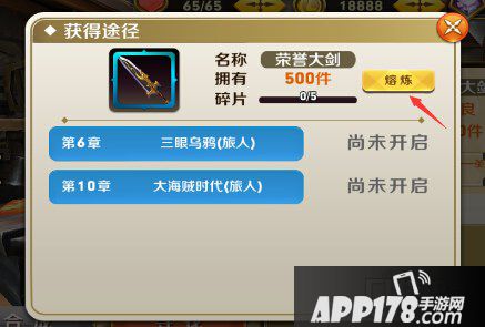 2、打开“获得途径”窗口后,再点击“熔炼”按钮就可以直接跳转到熔炼界面了(如下图)