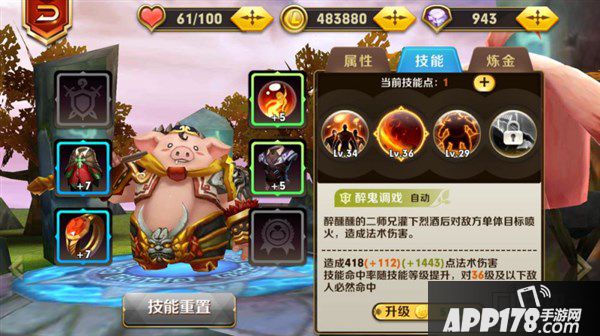 八戒的血量与法师相差不多,也能经得住打,输出方面以法术技能为主,暴击率挺高。既能输出,也能治疗。八戒的辅助技能只有一种,且是持续恢复的类型。除了强化法术强度和反伤的两种提供自身加持的技能外,还有一种法伤技能,伤害不亚于法师,而且使用频率较高。