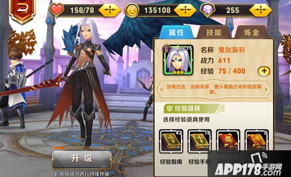 英雄的获得说了之后,小编给各位玩家讲解下如何提升英雄。英雄的等级除了可以在战斗中累积外,还能使用道具进行加成,在游戏中,点击英雄就能看见该英雄的全部信息,其中属性栏下显示的是英雄的等级以及名称、经验和战斗力,英雄经验的旁边有个+的按钮,玩家点击进去就可以看到经验道具,点击相应的经验道具就能对该英雄升级。经验道具可以从游戏战斗中和抽奖系统中获得,RMB玩家可以通过大量的钻石抽奖去获得经验道具,从而提升英雄等级。