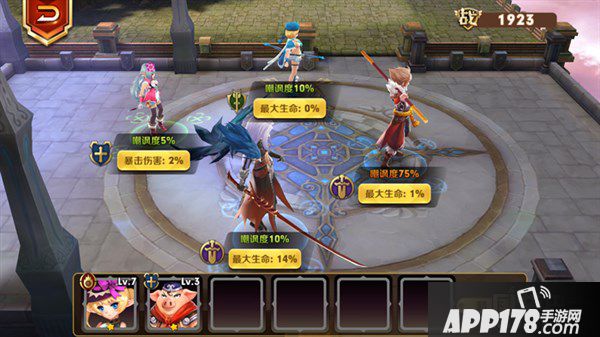 阵型位置除了有不同的嘲讽度外,还可以给角色进行不同的属性加成。由于队伍中前左右三个位置的嘲讽度比较高,所以这三个位置的加成均为血量加成,这样玩家便可以不用担心角色因为血量不够多而死亡。最后面位置为暴击伤害加成,虽然该位置不能进行近距离攻击,但独有的暴击加成可以使含有暴击率技能的角色拥有更大的发挥空间。虽然说队伍的每个阵型都有不同的含义,但是前期玩家还需根据自身所得的角色去进行布阵,不可盲目进行输出,攻守皆有的搭配才是最好的阵型。