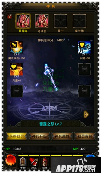 通过金币和钻石抽获得器灵;英雄同样可装备神兵。