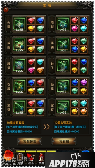 分为力量、敏捷、智力、体质等宝石类别,每种宝石对应增加一种属性;同类宝石可以通过合成提升宝石等级,带来更多的属性收益。
