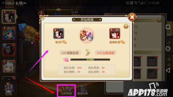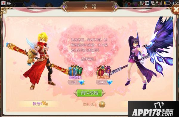 1. 结婚成功后夫妻双方都会自动获得双仙戒指 (点击阵容--查看角色)