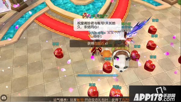 4. 豪华婚礼流程:双仙契约仪式--礼炮贺喜--全服红包--喜糖五撒 (花费999钻石),详见下附图。