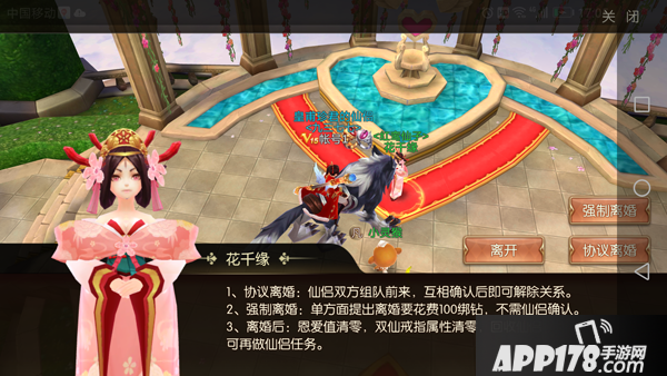 1. 强制离婚,单方面提出离婚且强制执行,不需要仙侣确认,只需要花费100绑定钻石。