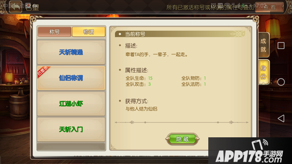 2. 如果夫妻恩爱值排名第一,可激活炫丽 “ 神仙眷侣” 称号。