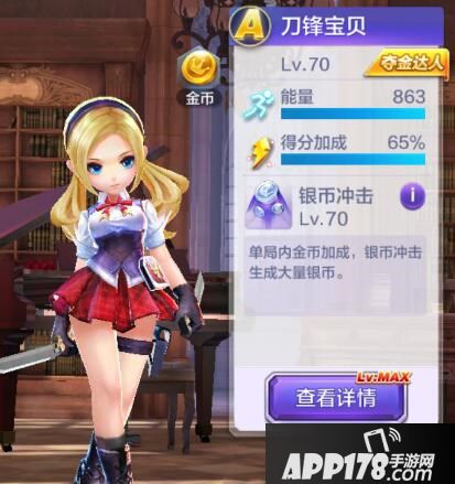 刀锋宝贝技能:单局内金币加成,银币冲击生成大量银币,纯粹的金币收割机,本关必选的角色。