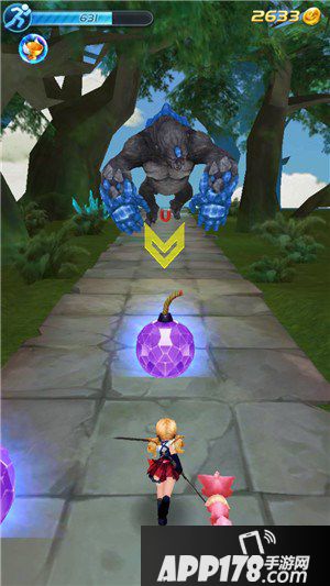 在淘金秘境的路段上,有许多紫色炸弹可以捡取,这是击退猩猩的唯一方法,不然角色撞上猩猩之后是会损失能量的哦。