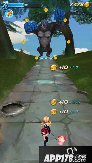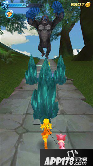 大猩猩在一路上会不断放出水晶柱和和滚动的石块,玩家在拾取金币的时候不小心碰到的话,就会损失能量,能量没有的话关卡就会结束哦~障碍物的躲避技巧比较简单,大家多注意一点就可以轻松通过。