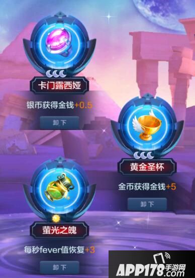 以金币加成为主选取宝物,小虎这里搭配的是:卡门露西亚+黄金圣杯+荧光之魄(增加续航能力)