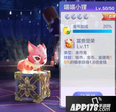 宠物选择金币宠,小虎选择的是喵喵阿狸。