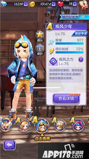 疾风少年技能:自动吸附收集物,吸附收集有额外得分加成,碰撞时免疫伤害推出技能。疾风少年在发动技能的时候可以将周围的收集物全部吸收,包括彩色星星,我们在自己拾取能收集到的彩色星星同时,那些无法获取的彩色星星这时候我们可以使用技能,这样就可以获得更多的彩色星星分数加成哦。
