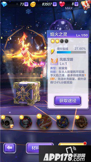 宝物搭配:凤凰羽衣,焰火之灵涅槃时距离得分加成210%。