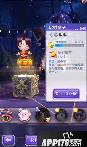 宠物技能招财聚宝:每隔一段时间将一个黄星转换成财宝箱,随机获得大量金币