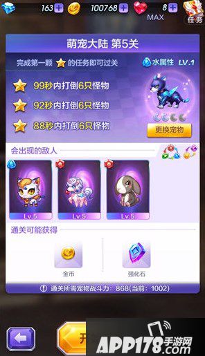 第5关通关所需宠物的战斗力为868。