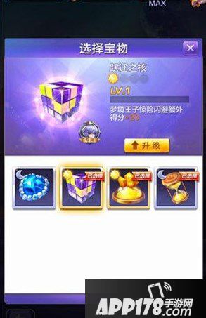 和其他角色相比,梦境王子的王子地位不可小觑,拥有两个专属宝物,分别是跃迁之核和梦境之尘。我们先来看一下跃迁之核,这个宝物可以使梦境王子惊险闪避额外得分+20。在极限挑战模式里,惊险闪避可以回复爱心能量还可以提高得分,跃迁之核可以在此加分基础上再加分,相当于是双重加分!