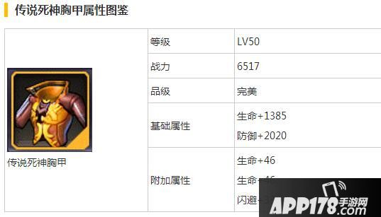 以上就是小编为大家带来的天天来战传说死神胸甲属性图鉴,希望大家喜欢。更多精彩的游戏攻略,敬请继续关注APP178手游网。