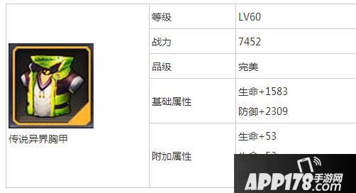 以上就是小编为大家带来的天天来战传说异界胸甲属性图鉴,希望大家喜欢。更多精彩的游戏攻略,敬请继续关注APP178手游网。