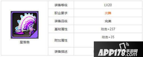 天天来战星落扇是游戏中的炎舞的20级武器,那么星落扇的属性如何?该怎么获得呢?下面小编给大家带来天天来战星落扇的属性介绍,一起里看看吧。