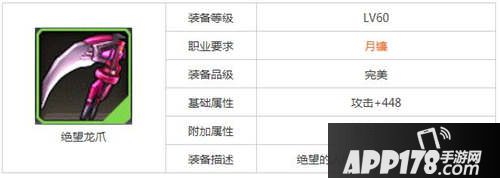 天天来战绝望龙爪是游戏中的月镰的60级武器,那么绝望龙爪的属性如何?该怎么获得呢?下面小编给大家带来天天来战绝望龙爪的属性介绍,一起里看看吧。