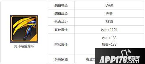 以上就是小编为大家带来的天天来战绝望龙爪属性图鉴,希望大家喜欢。更多精彩的游戏攻略,敬请继续关注APP178手游网。