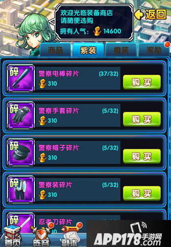 3、前期不要太执着于高品质的装备,出装总需要有个过渡期,一步一步来能避免装备等级强化不起的尴尬局面。当然钻石跟金币充足的玩家可以适当的进行跨越式选择。
