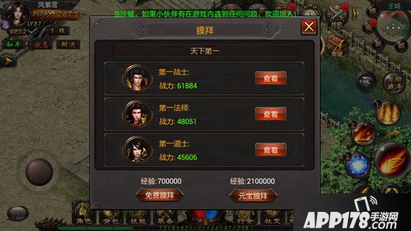 点击雕像就会弹出膜拜界面,其中有两个膜拜按钮,一个是免费膜拜,一个是元宝膜拜,两种膜拜给的经验都是很可观的,当然元宝膜拜会比免费膜拜经验要多了,如果两个膜拜都点了,经验就是大大的了。