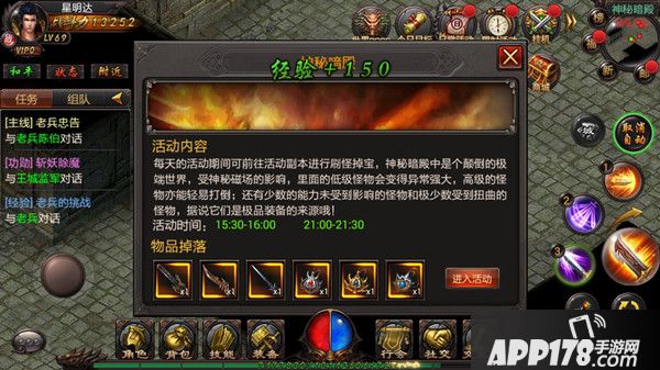 进入到神秘暗殿中,小编我的感受是,这是一个怪物、BOSS集中营,满地图都是小怪和BOSS。神秘暗殿活动时间分为两个时间段,15:30-16:00和21:00-21:30。