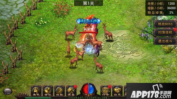 能够看到最上面有显示第1关,挂机房的关数是跟挂机房中的挑战BOSS关数相关的。通关了第几关的BOSS,就会进入到下一关的挂机房中了,挂机经验也会进行提升。