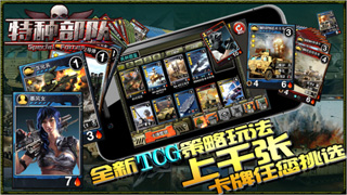 特种部队TCG是全球第一军事策略卡牌手游,以现代反恐战争为背景,展现了以中俄美为主导的大国集团与极端恐怖组织对抗的故事。游戏中,玩家将扮演一名反恐指挥官,通过收各种世界知名军事单位,组建强大的战斗部队,最终消灭各类恐怖分子。游戏中的所有卡牌形象均来自真实世界中的现役武器,玩家通过收集各种世界知名的武器、部队等军事单位组建强大的军队,可收集的要素包含“雪豹突击队”“歼31”“VII潜艇”等数千种全球顶级战斗部队,并提供玩家展现头脑风暴、挑战极限的战争平台。