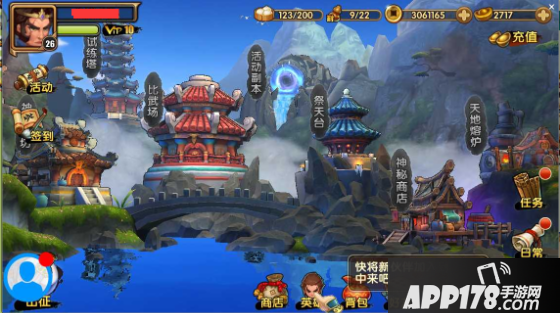 新手指导过后就是推图升级,8级日常开启做任务尽量升级,一天任务完成后能到20级,后面升级就靠推图了。推图满星奖励多多有妲己送(要送个天女最好了,天女推图必需品)。而且星星可以提升主角各项属性,这个是必须品,所以要尽量推图。