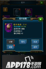 配件可进行强化、改造、进阶和分解操作。