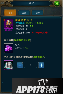 强化需要消耗一定量的宝石资源;配件品质和等级越高,强化需要的宝石越多。