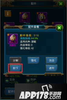 点击需卸下的配件部位,弹出配件查看框,点击卸下按钮即可完成卸下操作。