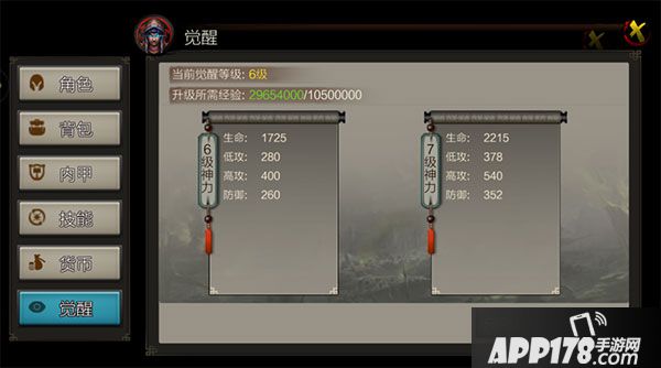 觉醒升级主要提升生命、低攻、高攻、防御这四种属性。最高等级为觉醒9级。对于战力的提升来说可谓是一个质的飞跃哒!