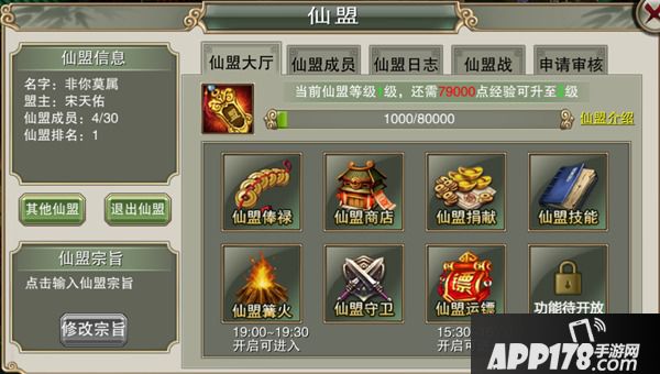 1、可通过仙盟大厅参与仙盟内各种活动,包括领取仙盟俸禄、学习仙盟技能、参与仙盟篝火、仙盟守卫等。