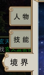 先点击游戏主界面左上方的角色头像,这时游戏主界面下方会弹出菜单栏,再点击菜单栏中的“人物”,然后点击“境界”选项卡,即可查看境界。