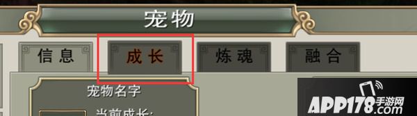 先点击游戏主界面左上方的角色头像,这时游戏主界面下方会弹出菜单栏,再点击菜单栏中的“灵兽”,然后点击“成长”选项卡,即可查看成长界面。