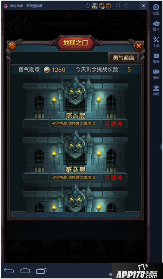 这个时候可以倒回去有副本怪的关卡进行研究,当然BOSS在地狱之门闯关中是会增强的,每闯过一关都可以提升当前关的难度,当然小编这种新手就来开荒了,也就不推荐其他人去浪费次数了。