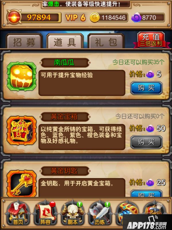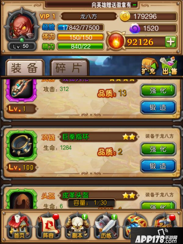 紫色的装备可以从在线奖励,白银宝箱,精英副本的副本宝箱,以及vip礼包中获得,特定的精英副本还会掉落装备碎片。