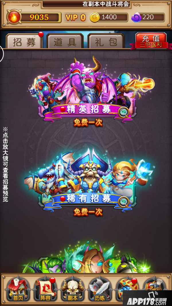 精英招募:每次消耗280符石,必定获得4星或5星英雄。单次招募积累到一定次数后,必定获得5星英雄。一次性招募10次,必定获得5星英雄。