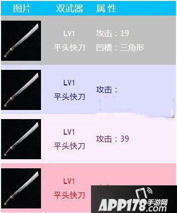 2、平头快刀攻击力39,凹槽形状三角形.。