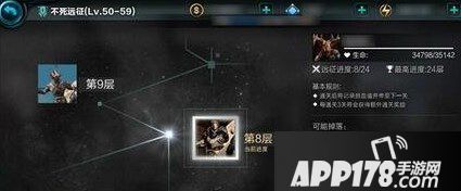 在无尽之剑命运不死远征第8层,在关卡列表中就可以看到概率掉落升阶石,这里升阶石的品阶与玩家角色有直接关系,角色等级高,掉落的可能就是高级升阶石等,角色等级低,则是低级或中级升阶石。在成功击杀BOSS后,玩家还能获得与等级相关的经验值,以及一定数量的金币。