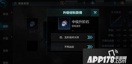 40级以下装备进阶需要的初级进阶石可以通过三阶以下剑术大师和不死远征获得。40级以上(包括40级)装备进阶所需的中级升阶石则可以通过四、五阶剑术大师和不死远征获得。