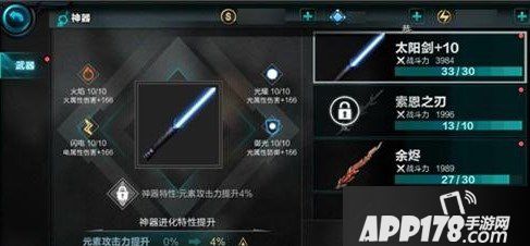 太阳剑神器具有提高勇士元素伤害的能力,包括火属性伤害、光属性伤害和电属性伤害,同时也能提升勇士光属性防御能力。通过锤炼,可以让太阳剑赋予勇士更多的能力加成。太阳剑神器进化特效为百分比提升元素攻击力,只有把太阳剑锤炼到一阶+10(一阶满级)后才能进化为二阶,激活神器特性。进化到二阶时需消耗30个神器碎片,之后可继续锤炼神器至二阶满级,再通过消耗50个太阳剑碎片进化到三阶,强化神器特性,如此不断锤炼、进化,直到最终打造出最强太阳剑。
