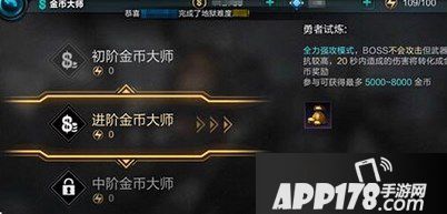 金币大师中,BOSS不会攻击,但却有较高的武器抵抗能力。整个试炼过程只有短暂的20秒时间,期间造成的伤害越高转化成的金币越多,BOSS有最高血量值,可以被击杀!