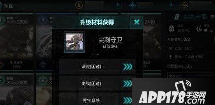 在《无尽之剑:命运》中,不同军团卡牌在获取途径上会有一定区别,除了常规寻宝系统产出外,还可以通过副本、商店等获取。尖刺守卫就是可在副本内通关掉落的存在之一,掉落副本有困难难度第六章BOSS本6.4“深院”和困难难度第十四章BOSS本14.5“决战”,推荐挑战等级分别是33级和63级。
