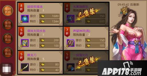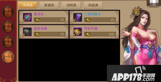1、商城中限时折扣、推荐商品、热销商品均可用元宝购买;