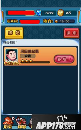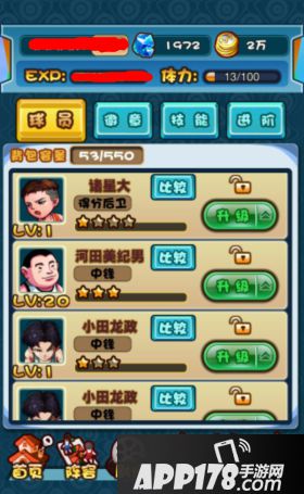 第一步、进入阵容界面,以小胖子“河田美纪男”为例。(若背包中有激活天赋所需要的球员卡牌时,下方天赋技能就会闪烁)