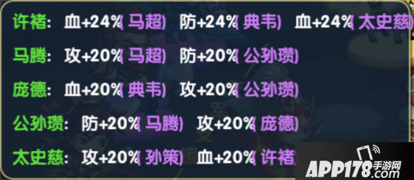 马腾,庞德,许褚在前,公孙瓒,太史慈在后,标准的3T2DPS阵容,而且还是能打能抗的T。